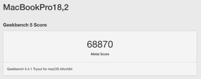 Geekbench menekankan semua core prosesor secara bersamaan, kemudian mengkalibrasi hasil terhadap garis dasar 1.000 poin (berasal dari Intel Core i3-8100). Semakin tinggi skor, semakin baik kinerjanya, dan M1 Max sejauh ini telah mendapatkan skor Metal 68.870.